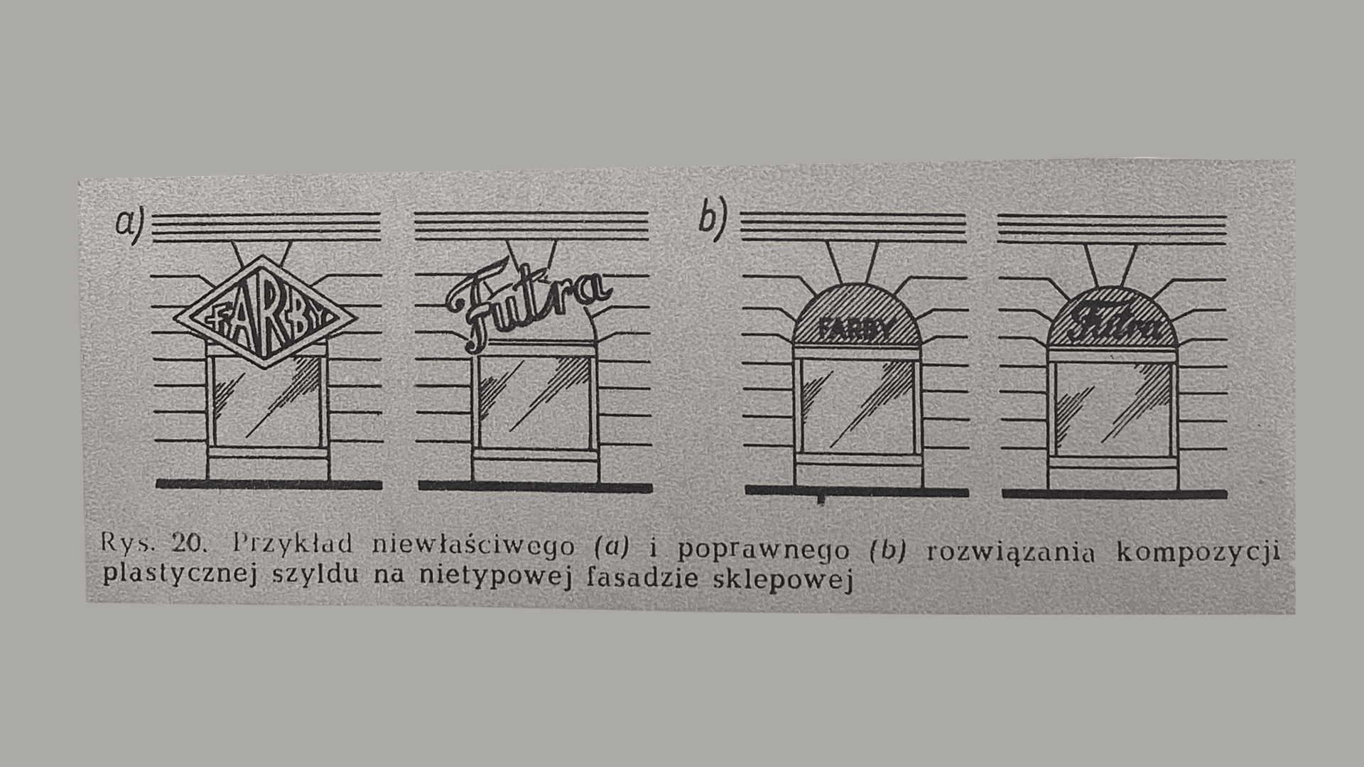 Autor opisuje czasy Polski Ludowej (dokładniej ostatnie dziesięciolecie od 1955 roku), w której panował nadzór architektoniczny w celu zapewnienia "wysokiego poziomu estetycznego plastycznej strony szyldów i innych oznaczeń zewnętrznych". Warto o tym pamiętać wspominając te czasy. To, jak szyldy i neony były estetyczne, zawdzięczamy temu, że osoby o właściwym wykształceniu je projektowały i decydowały o ich zamieszczeniu. Nadzór ten był powierzony architektom w prezydiach rad narodowych, którzy mieli obowiązek zatwierdzać planowane reklamy zewnętrzne, ale również kontrolować ich stan estetyczny po zamontowaniu.