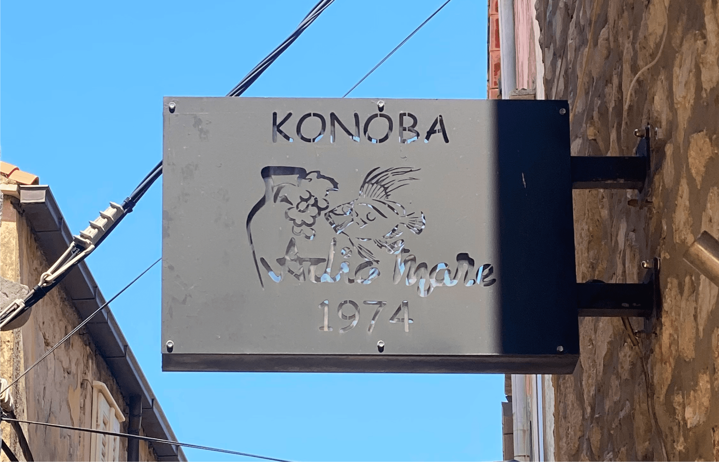W chorwackich miasteczkach łatwo rozpoznać dwa rodzaje szyldów. Pierwsza grupa to rozwiązania „domowe” – proste, wykonane własnymi siłami, wykorzystujące podstawową typografię i materiały.