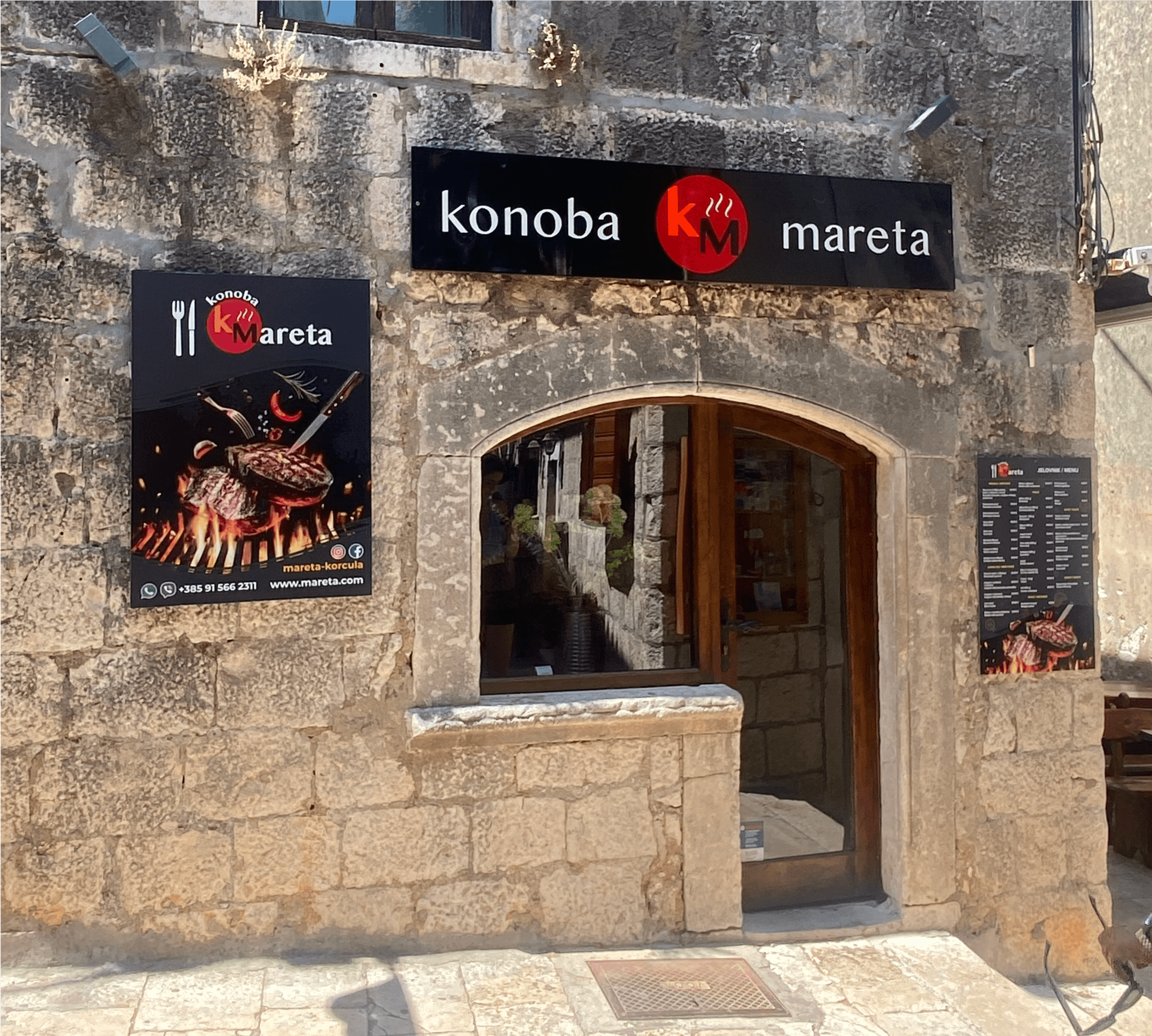 W chorwackich miasteczkach reklama działa na zupełnie innych zasadach niż w polskich centrach handlowych czy szerokich ulicach. Tutaj wszystko dzieje się na poziomie oczu przechodnia. Szyldy umieszcza się nisko, często w oknach wystawowych lub tuż nad wejściem do lokalu.