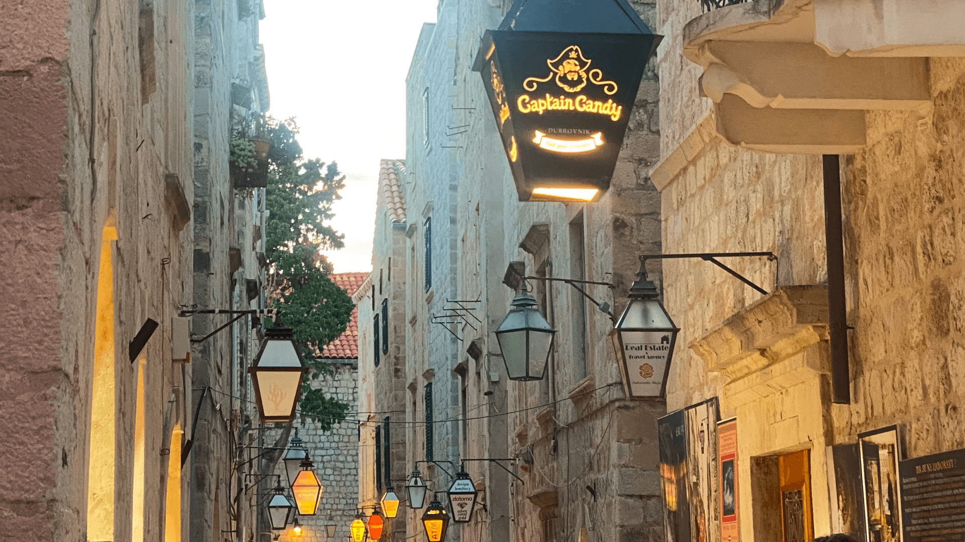 Podczas letniego wyjazdu na półwysep Pelješac, gdzie zwiedziłam Korčulę i Dubrownik, zauważyłam rozwiązanie, którego nigdzie wcześniej nie spotkałam. W ciasnych, średniowiecznych uliczkach Dubrownika szyldy służą nie tylko jako identyfikacja lokalu, ale również jako oświetlenie publiczne. Na ściankach lamp zamieszczone są loga oraz nazwy lokali przy których są zamieszczone. Dzięki takiej konstrukcji szyld pełni podwójną funkcję. W dzień działa jak standardowa tablica reklamowa, wieczorem natomiast zamienia się w lampion, który oświetla ulicę i jednocześnie promuje lokal.